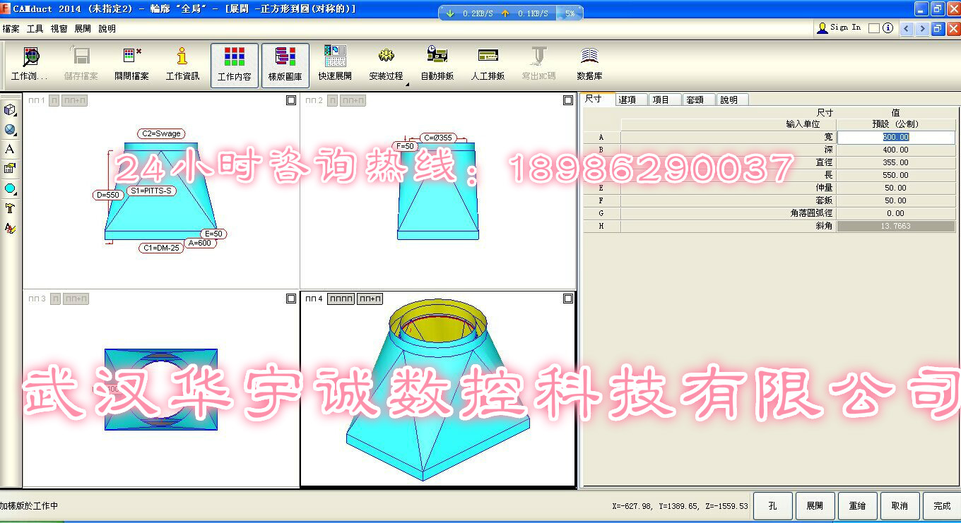 9、隨機配套提供風管展開切割專用軟件,無需掌握復雜的繪制及計算。只需選擇相應的風管類型,輸入簡單參數(shù)即可自動生成加工程序進行切割加工。